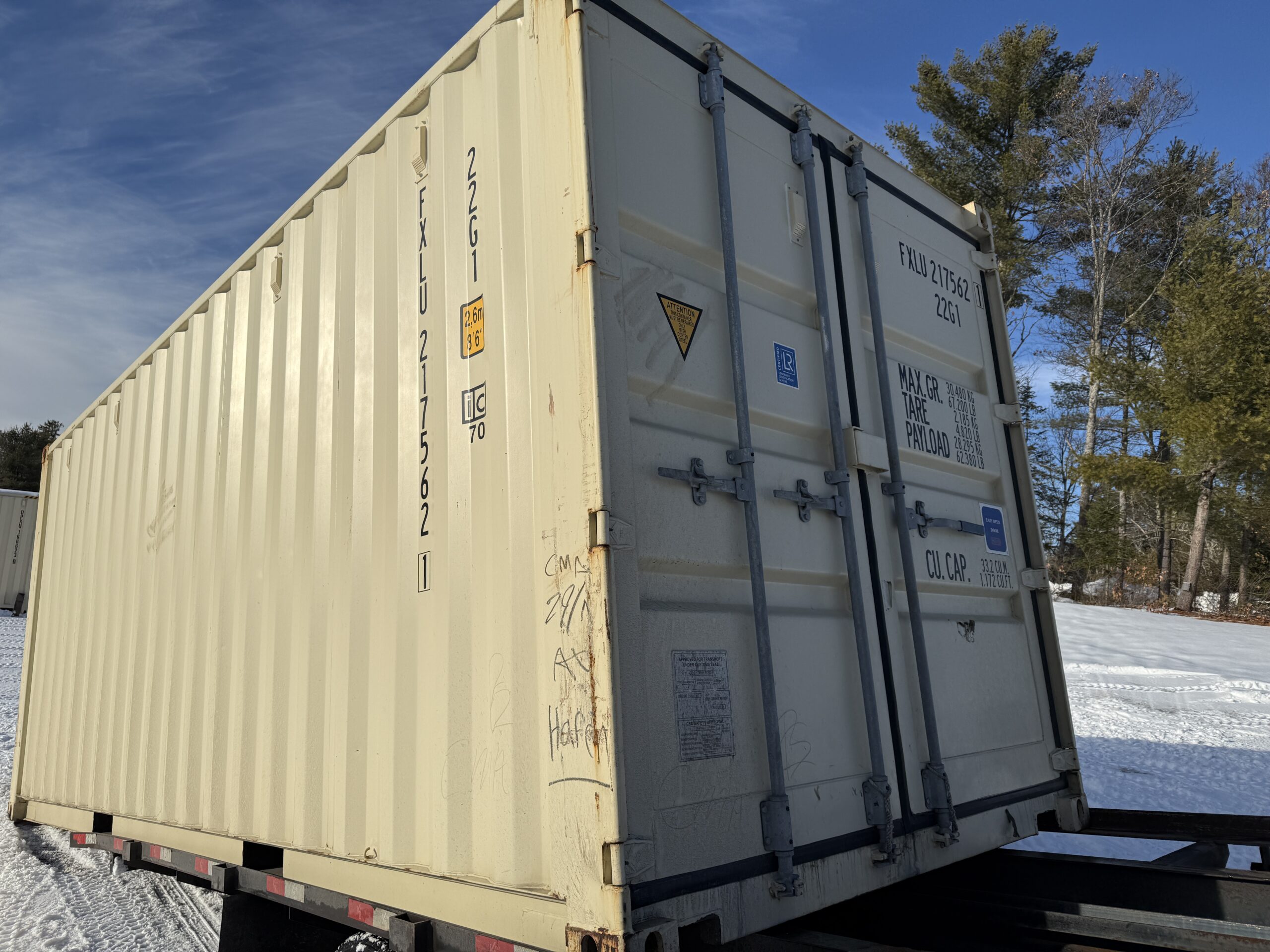 We occasionally sell containers with doors at one end, both ends (double door containers), and side doors (open side containers). Click here to view our current inventory.