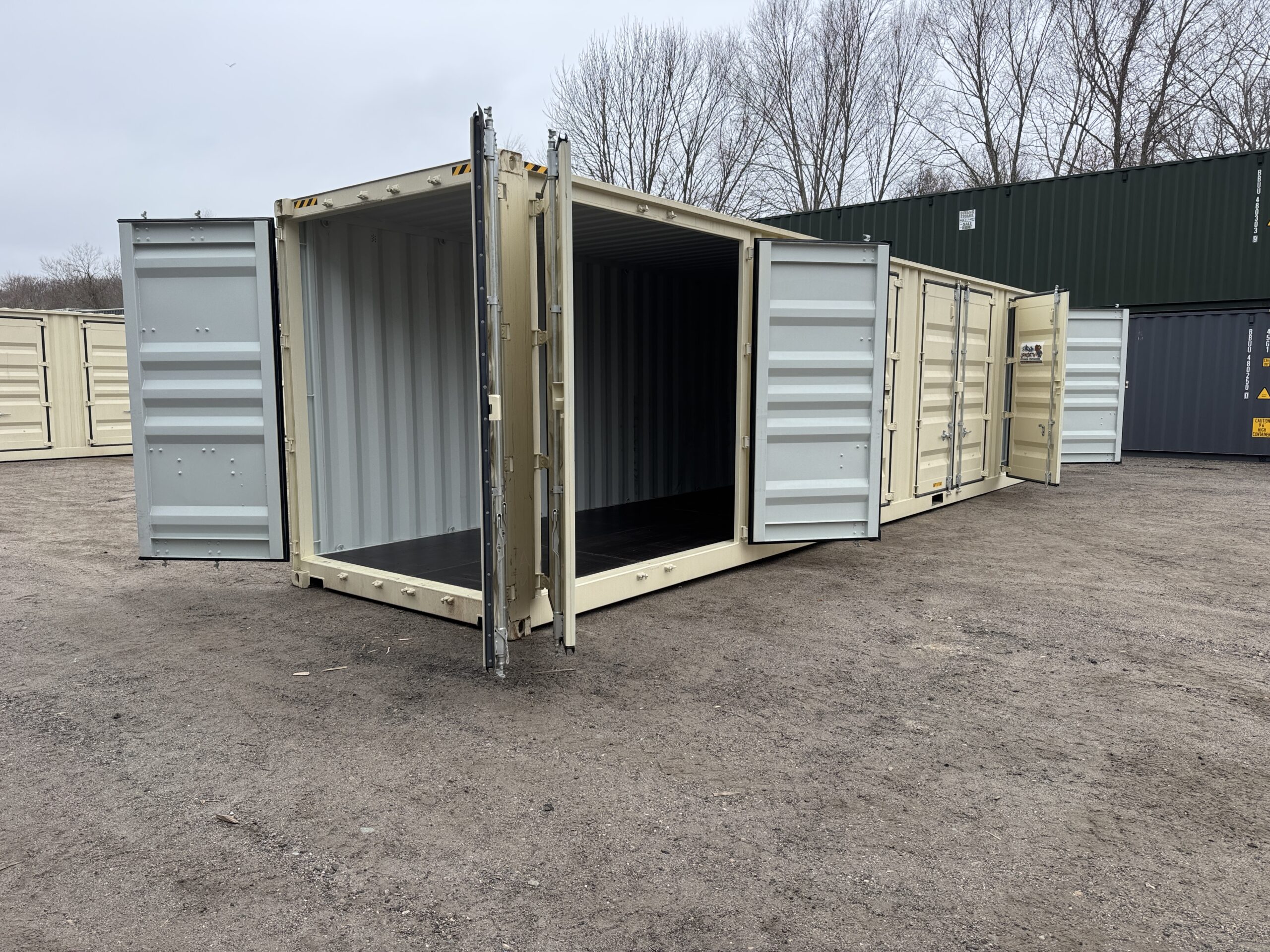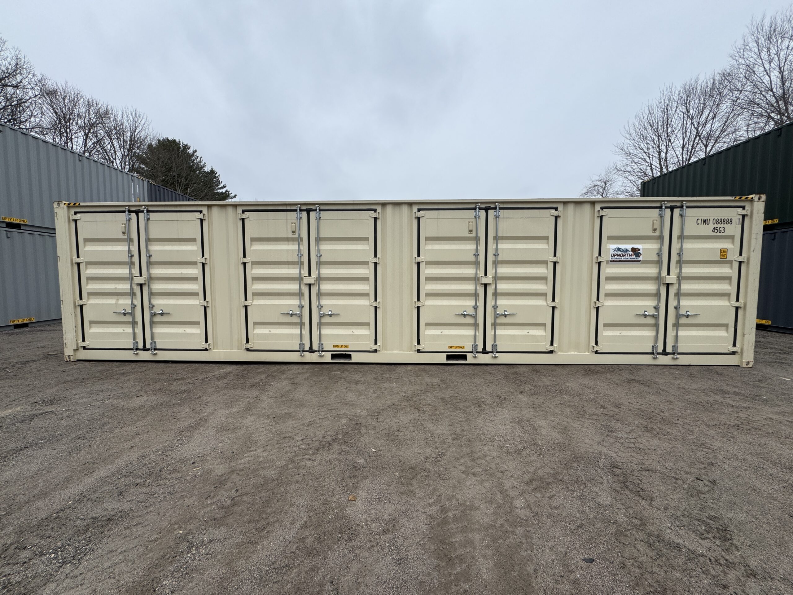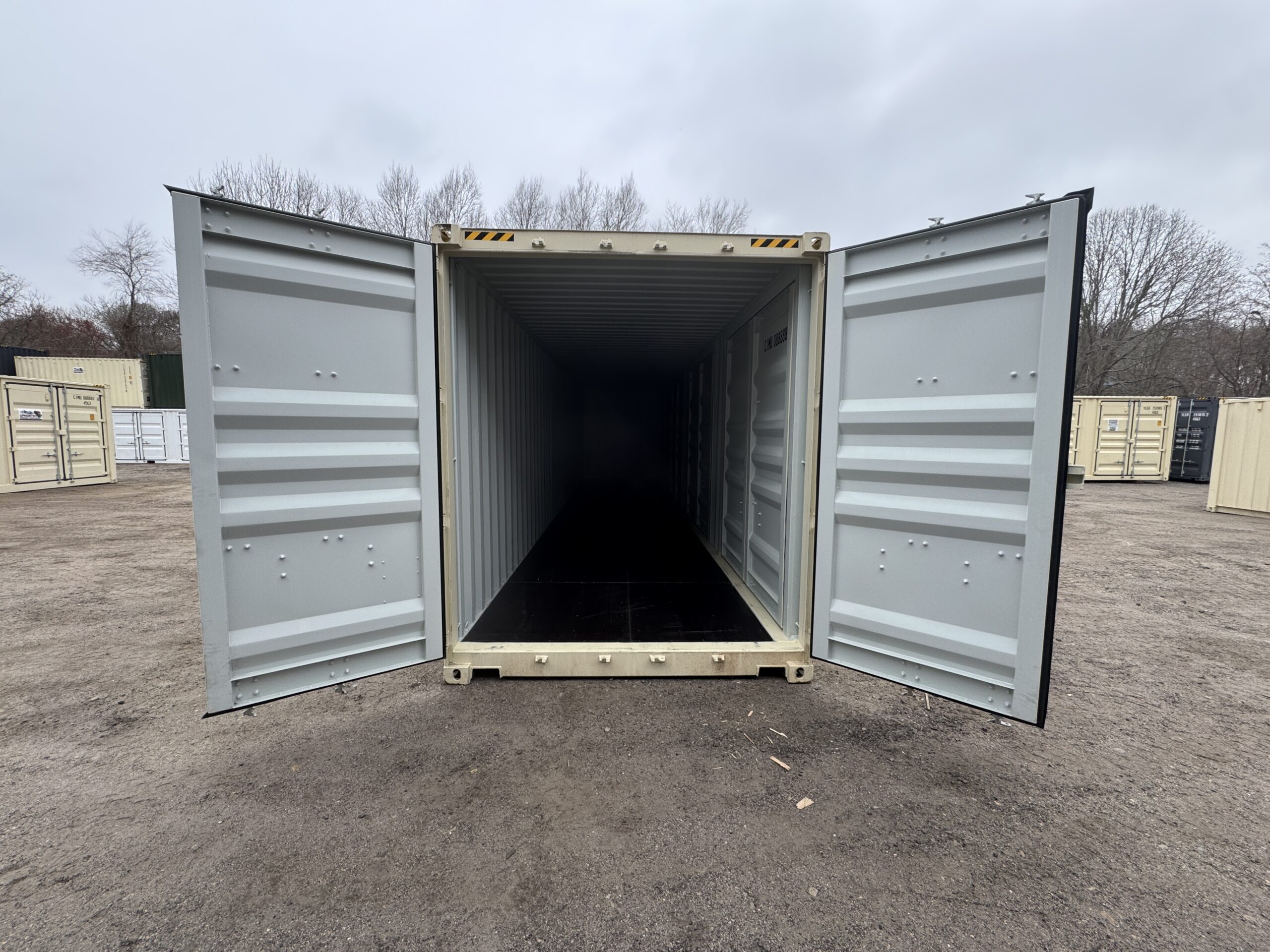 40′ x 8′ x 9.5′ Tall – HIGH CUBE With 4 Doors!! New / “One Trip” Shipping / Storage Container – BEIGE