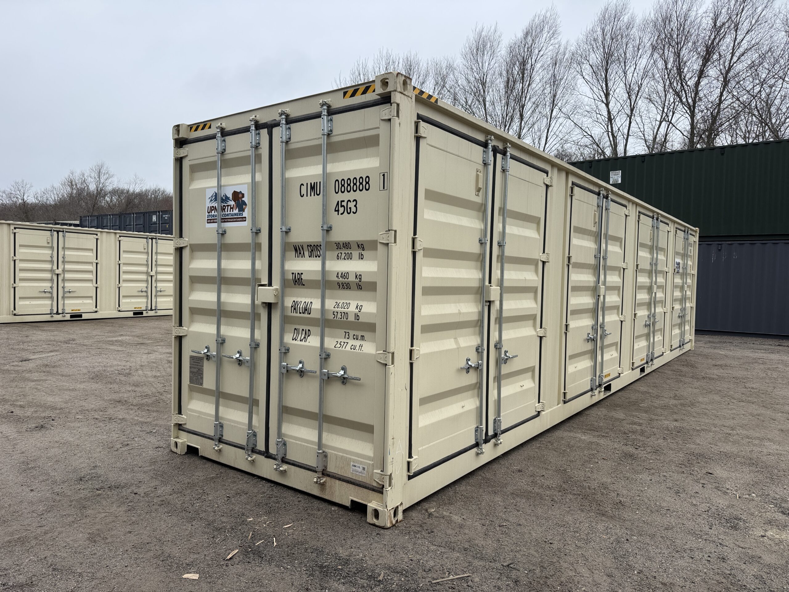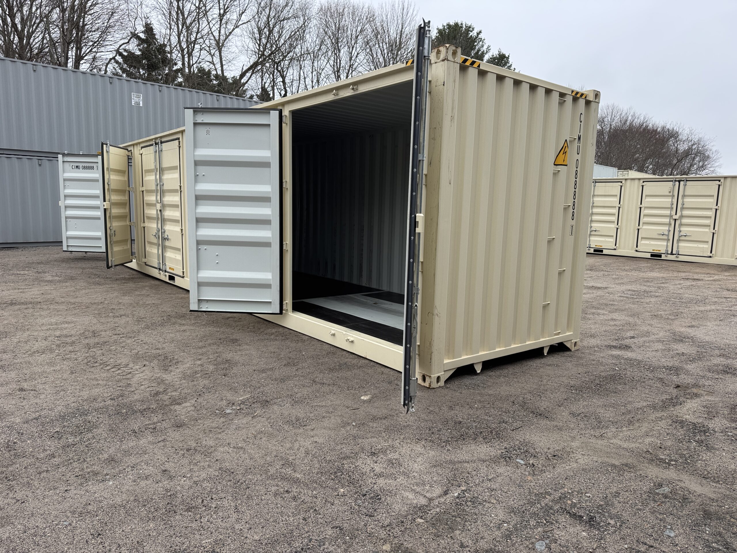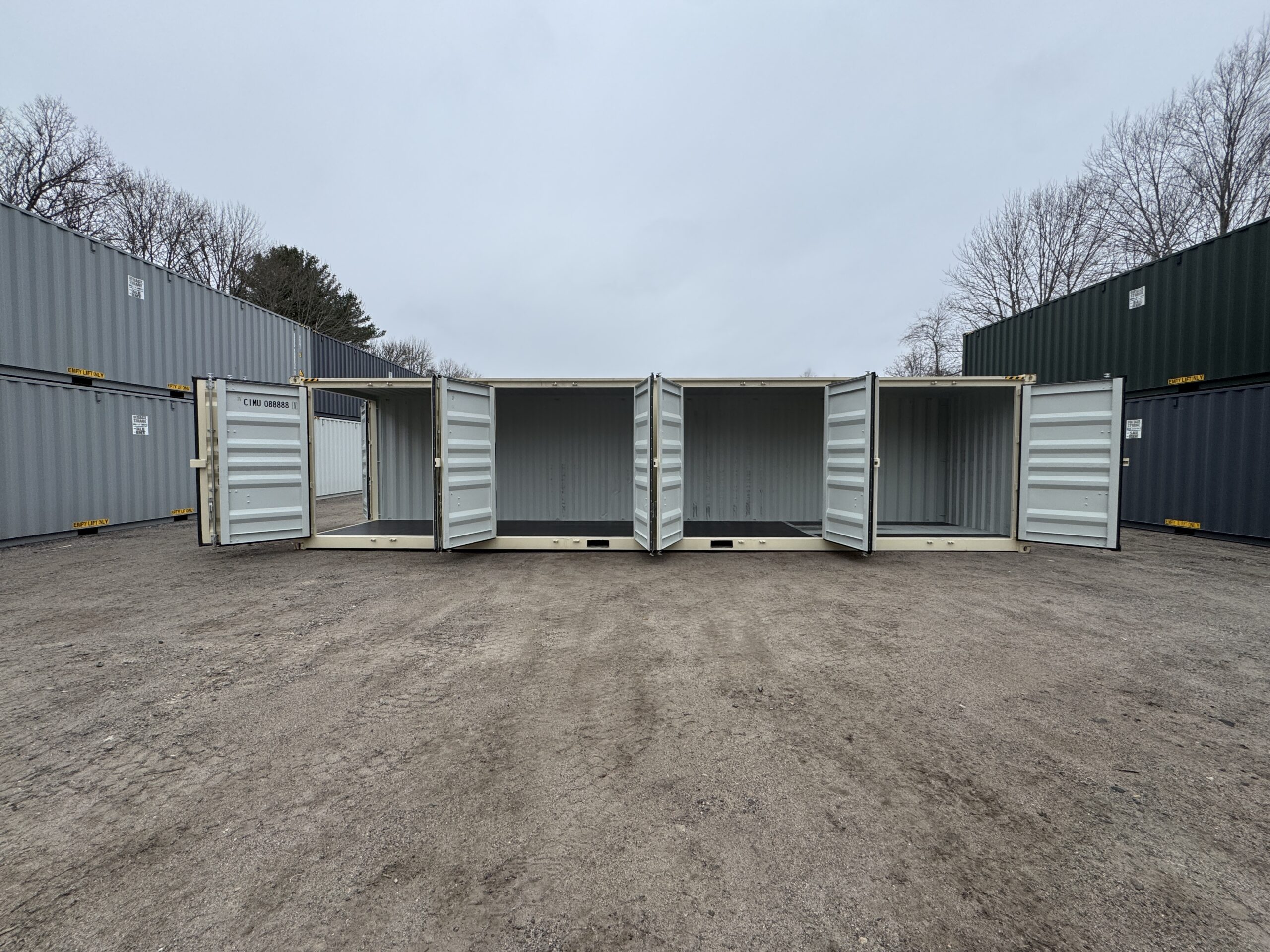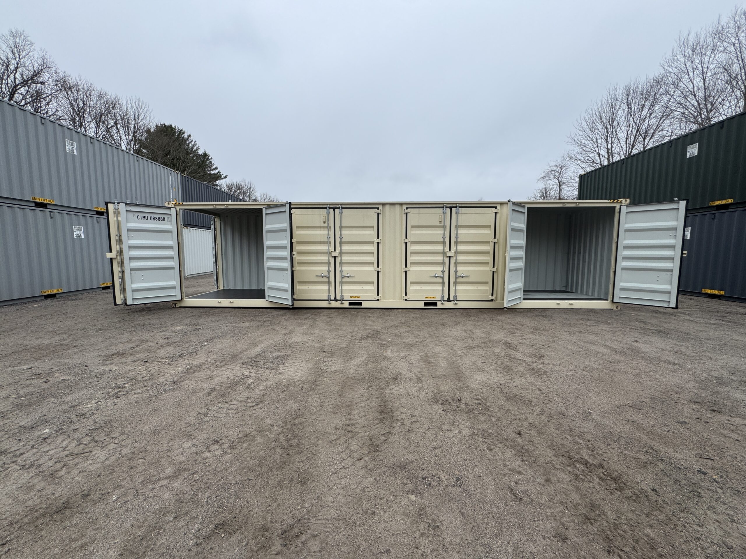 40′ x 8′ x 9.5′ Tall – HIGH CUBE With 4 Doors!! New / “One Trip” Shipping / Storage Container – BEIGE