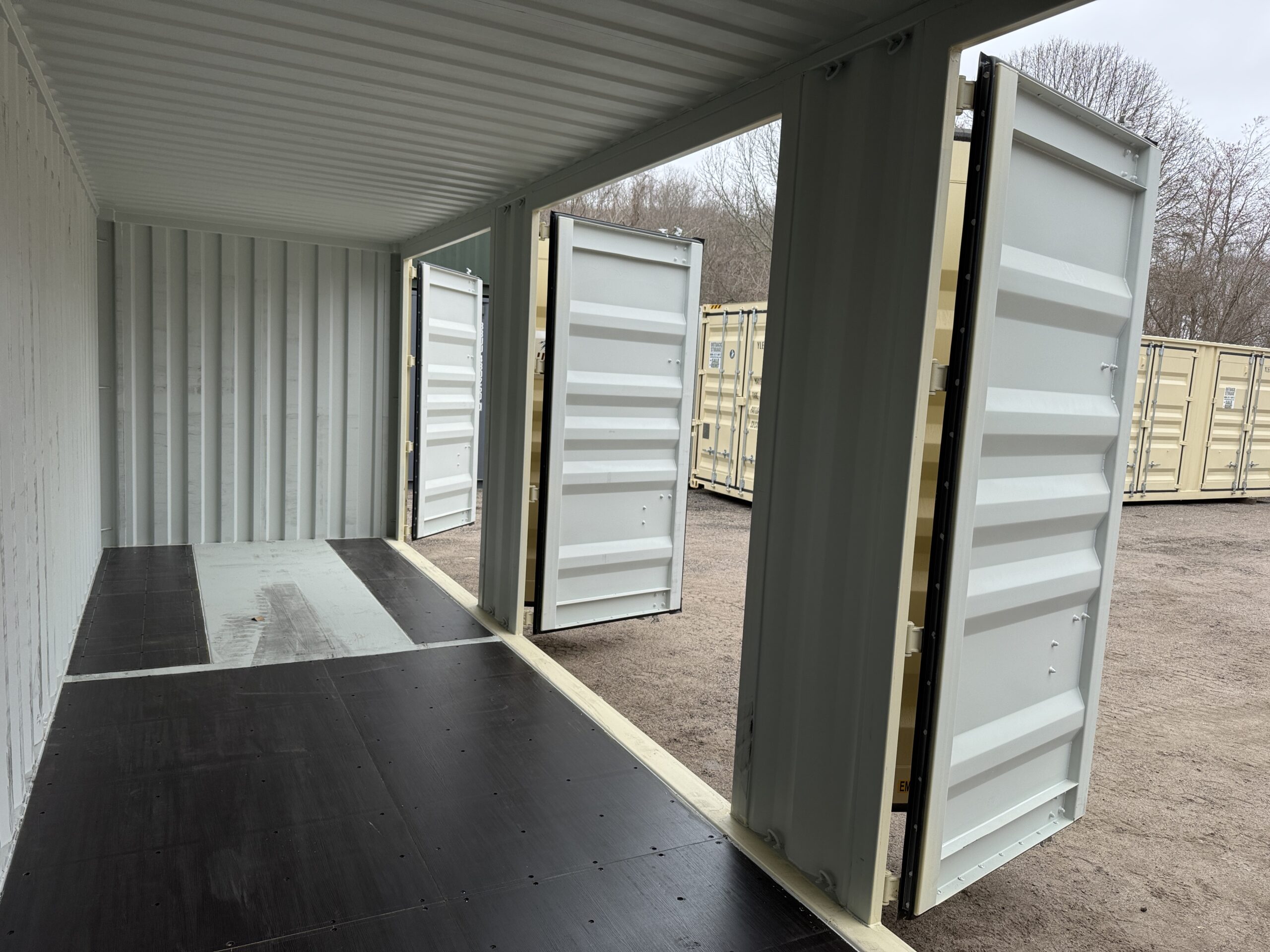 We occasionally sell containers with doors at one end, both ends (double door containers), and side doors (open side containers). Click here to view our current inventory.